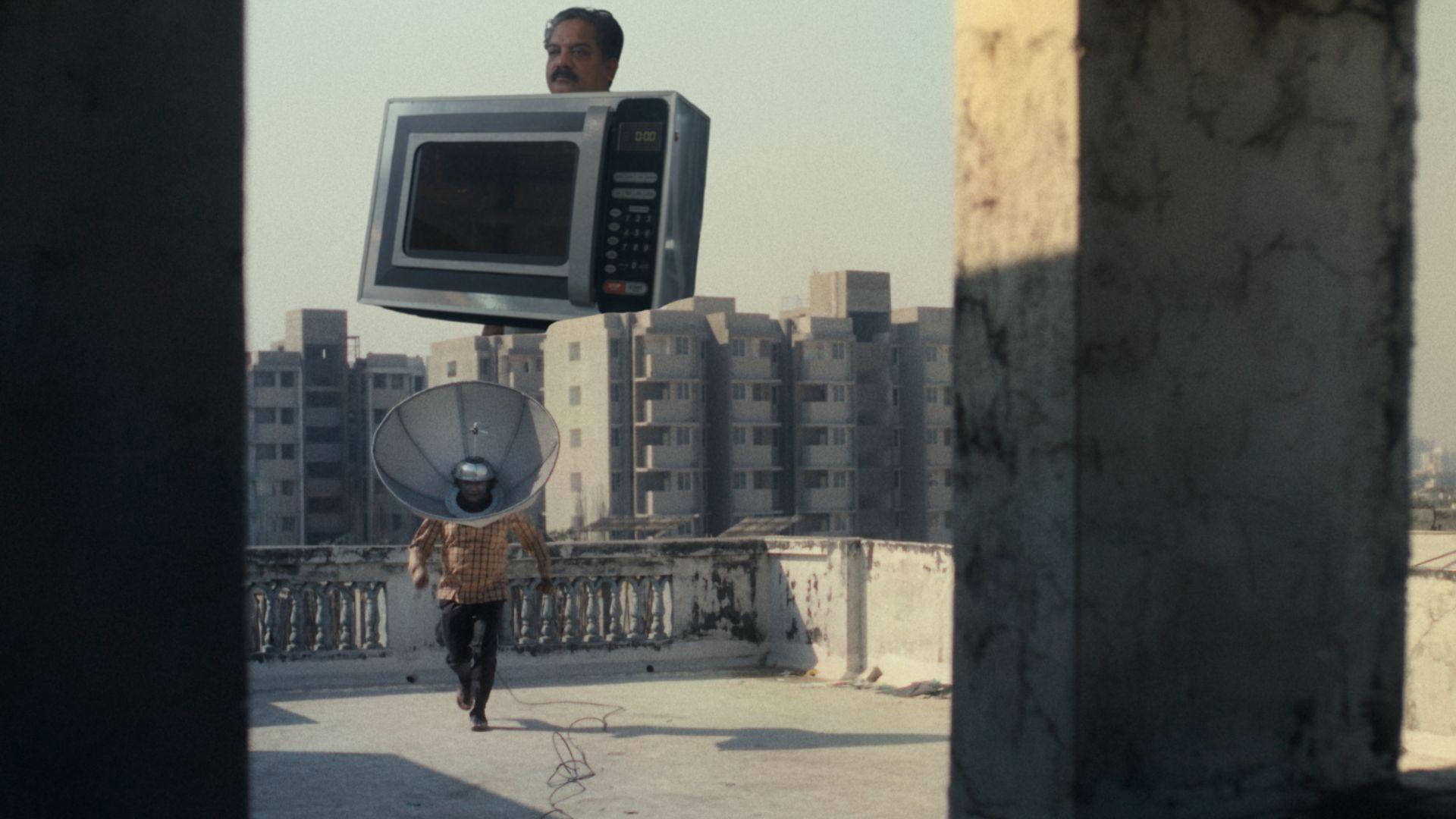 In a crumbling Indian town, three retired men stage a protest against machines taking over human jobs, by pretending to be household appliances.
