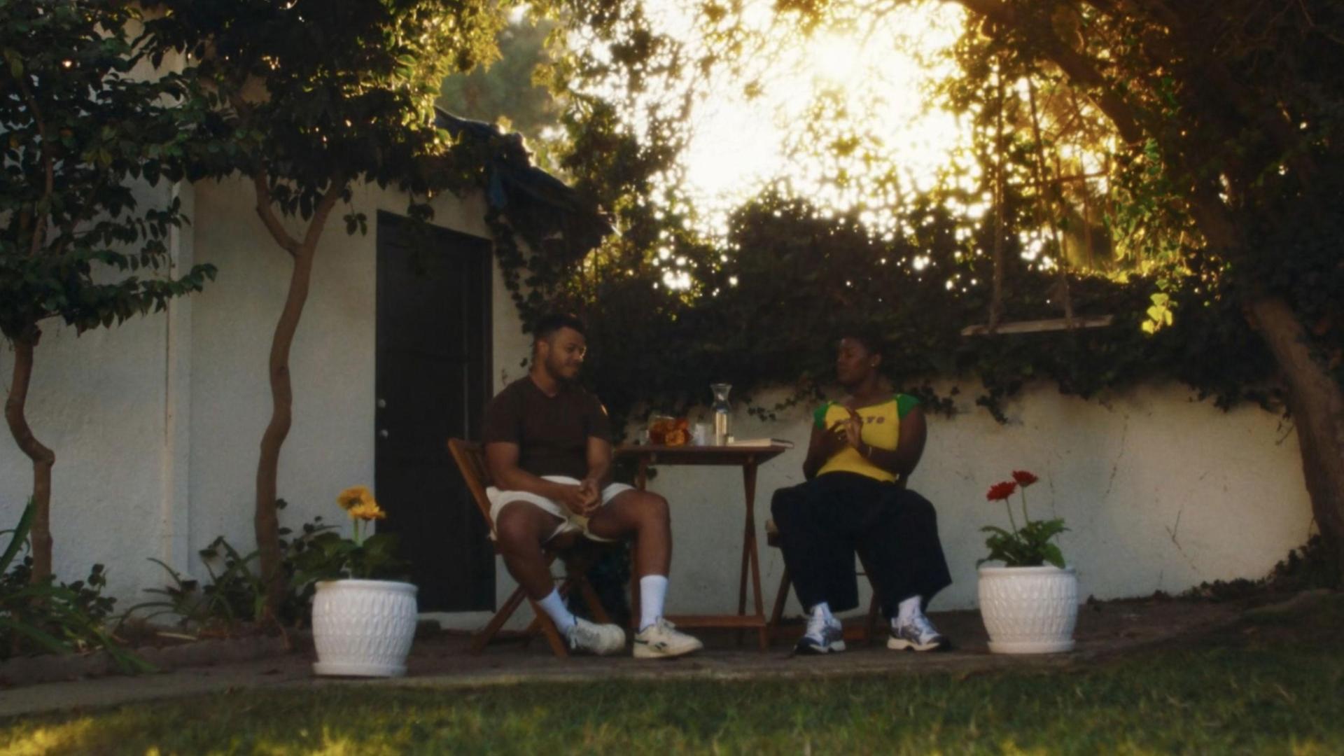 Two best friends sit on a patio, whittling the day away in conversation as they try to define what love is and isn't.